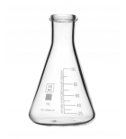 Колба лабораторная, коническая, с плоским дном (т.н. колба Эрленмейера). Горловина имеет цилиндрическую форму и шлиф муфту 29/32. Изделие выполнено из термостойкого стекла, его можно нагревать с помощью специальных горелок. Кроме того, стекло отличается хорошей прозрачностью, обеспечивающий легк..